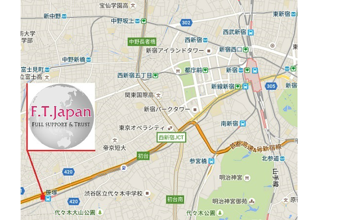 ・首都高速使用の場合は4号線、幡ヶ谷で降りて上記新宿方面からとなります。